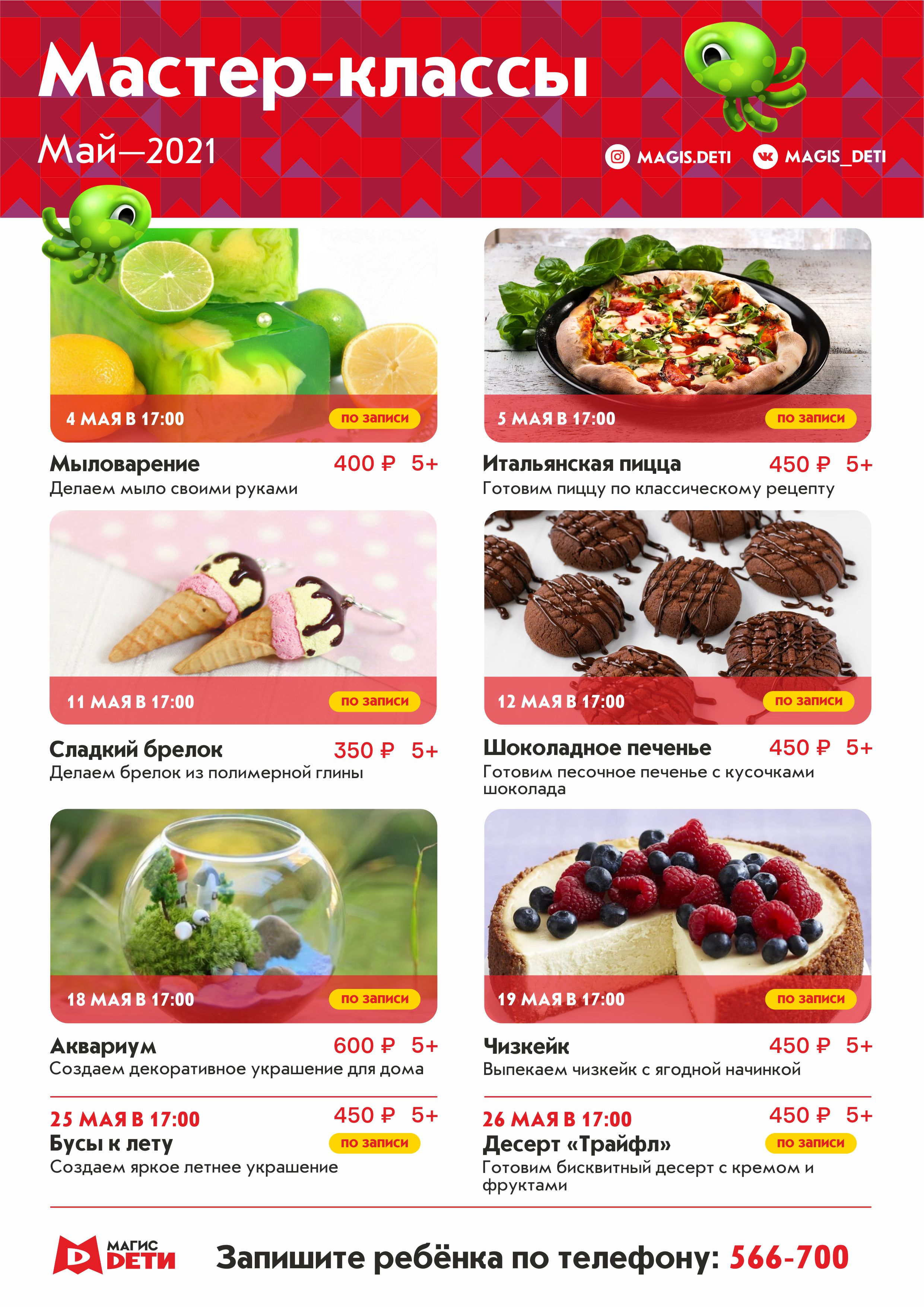 Посетите все мастер-классы мая в клубах Магис Дети. Звоните и записывайтесь!