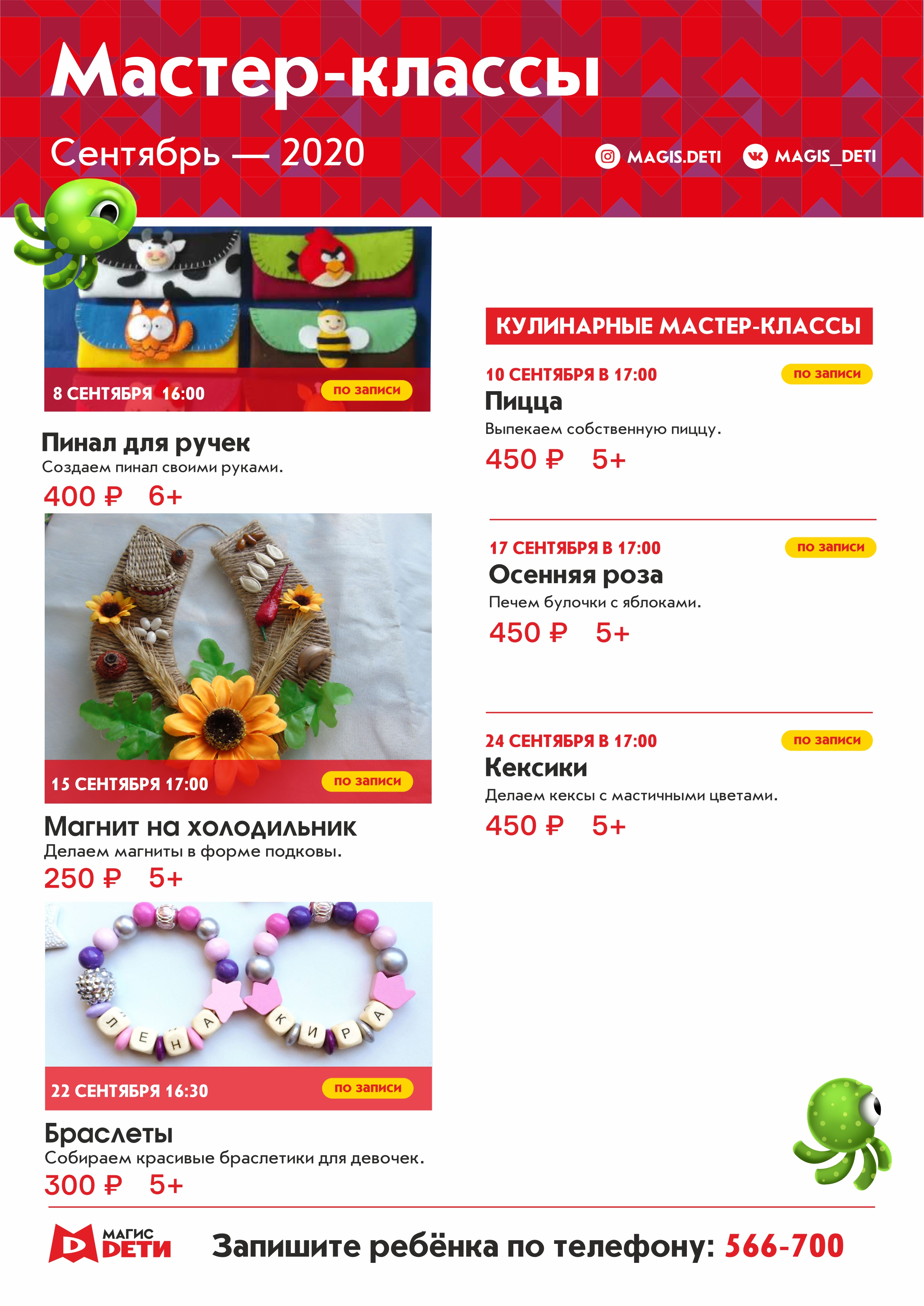 Ну вот и настала осень, все дети отправились в школу, начались ежедневные занятия и подготовка уроков. Педагоги Магис дети активно готовились к этому месяцу и по традиции сделали много нового интересного, для ваших детей. Разбавьте учебные будни творческими и кулинарными мастер-классами от клубов Магис Дети.