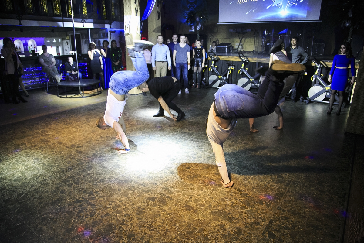 Одно из самых ярких впечатлений вечера — мощное открытие программы! Тренерский состав во главе с генеральным директором клубов Владимиром Гордейчиком подготовил масштабный танцевальный номер и новогоднее шоу на сайклах (стационарных велосипедах).